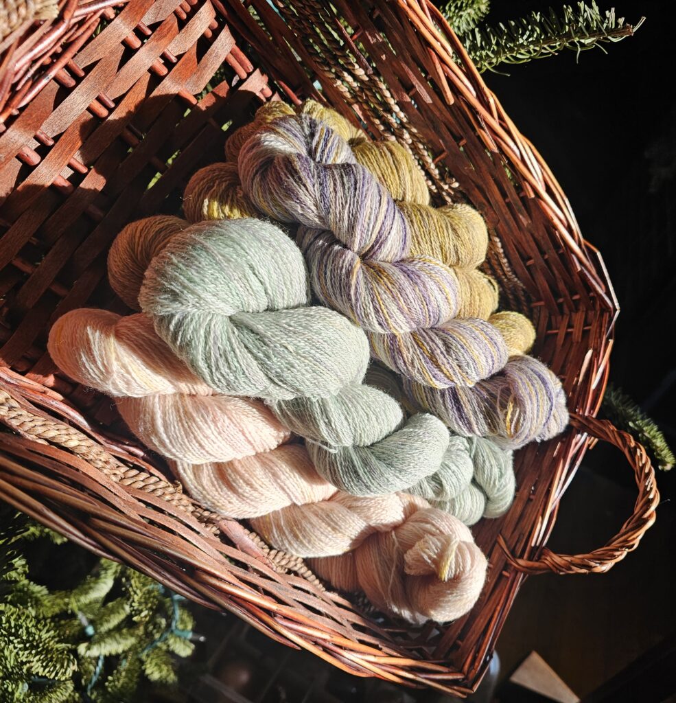 We botanically dyed our first batch of lace weight organic wool (18/2) yarn during this time too, which will be for sale. Vic delivered the first half of the batch to H&H Mercantile today after he got off work. We’re still working on reskeining the rest, but I love how the colors turned out — despite our stove running out of gas right after all the dye was in the pots! Luckily, we have a wood stove that we finished installing a few months ago, so we were able to heat everything to the appropriate temperatures to set the dye. The hand-painted ones turned out paler than expected due to this, but I think they are beautiful regardless!